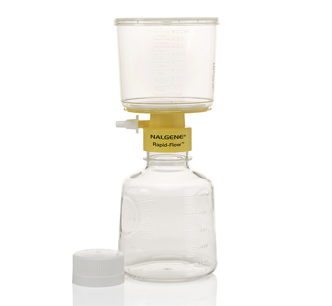 Increase filtration efficiency. Thermo Scientific™ Nalgene™ Rapid-Flow™ Disposable Filter Units feature the exclusive Rapid-Flow support column design, providing fast flow rates and high throughput. The last line of defense against cell culture contamination—Nalgene Rapid Flow Filter Units and Bottle Tops are the best choice for the filtration of cell culture media, serum, additives and buffers. Some products on this page are ACT Labeled by My Green Lab to enable data-based sustainable product purchasing decisions (see Full Specifications in the product table for item participation).