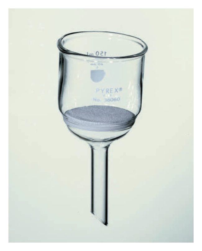 These funnels are especially useful where filter paper would be attacked by the material being filtered. The disc should not be subjected to pressure differential in excess of 1 atmosphere. The top edge is beaded.