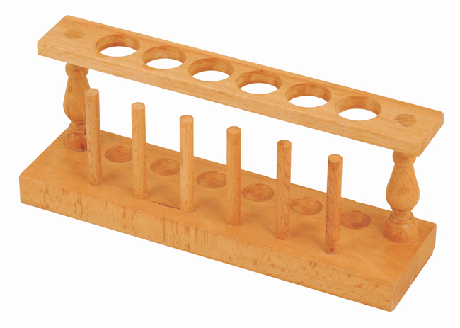 Six Hole Wood Test tube Rack with coated finish to protect from chemicals.