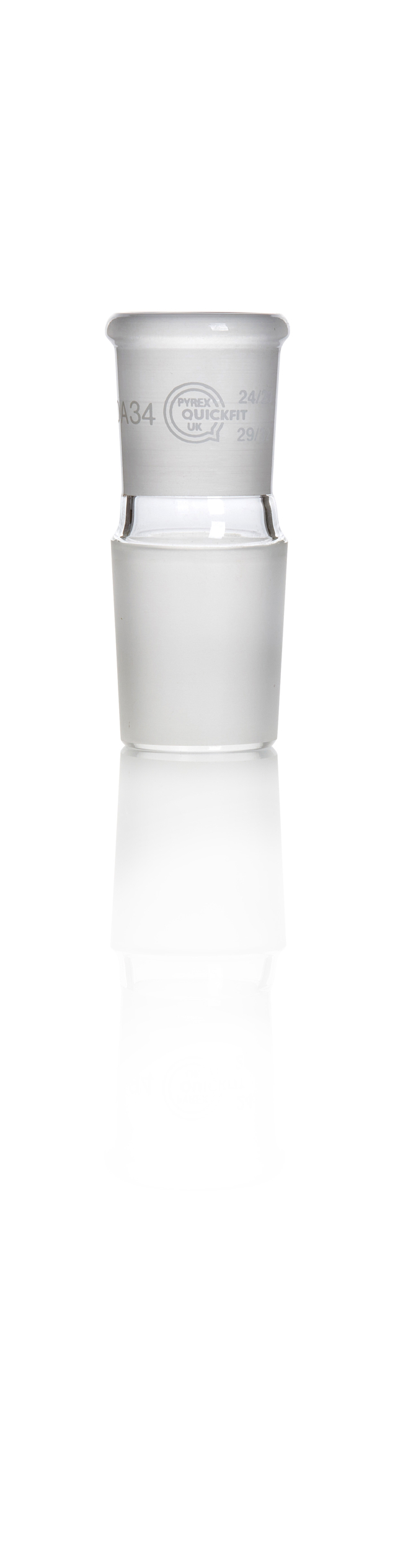 Made of borosilicate glass. Pyrex Labware™ Quickfit™ Reduction Socket Adapter connects large sized ground glass joints with smaller sized ones.